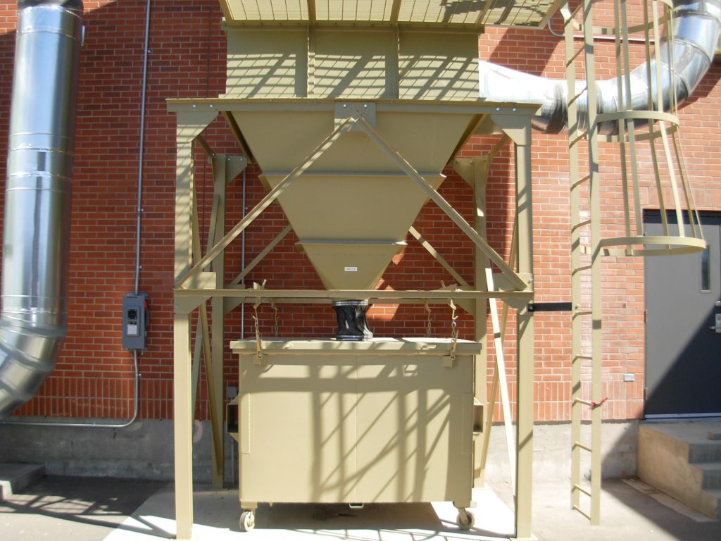 Like all industrial equipment, and especially ducting conveying high velocity generating significant vibrations, your dust collector will create a certain amount of noise during operation. We always recommend utilizing a duct silencer and oversizing the return duct line to slow down the air. Furthermore, for top mounted fans we can include an acoustical enclosure which will significantly reduce the noise outside. If noise is REALLY a concern, let us know as we have several other options at our disposal that we’ve utilized in past specialty cases.